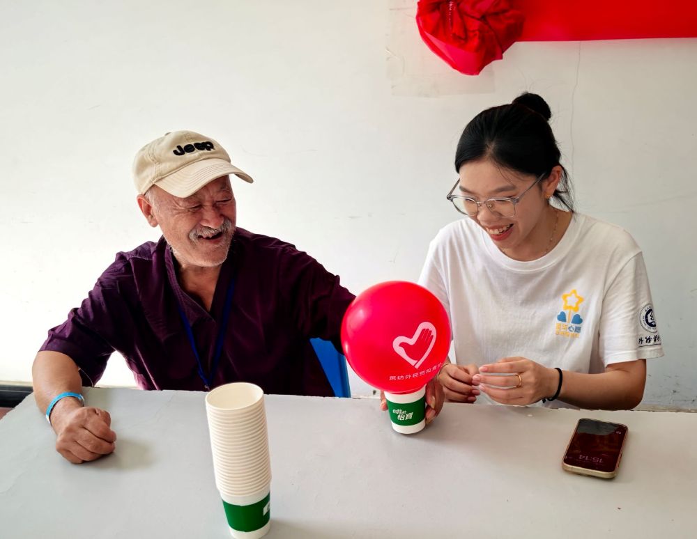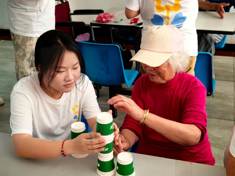 活動伊始,志愿者組織老人們參與拋氣球、疊杯子等互動游戲,并在過程中隨時提供協助與配合,確;顒影踩行。老人們熱情投入,現場氣氛熱烈融洽,有效拉近了彼此距離。