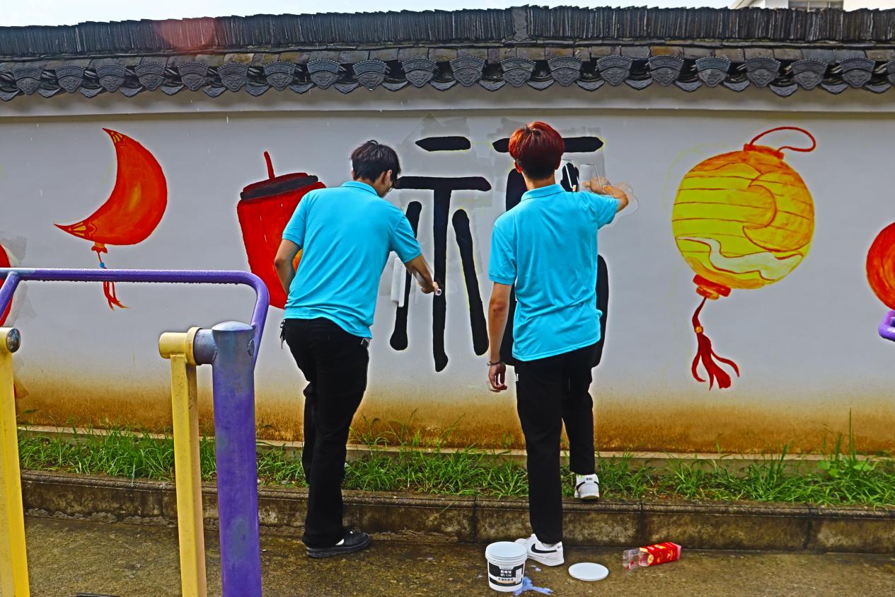 實踐過程中,全體成員秉持高度的責任感與使命感,將中華優秀傳統文化元素與現代創意設計理念深度融合。在墻體繪制過程中,團隊精心勾勒極具傳統韻味的“福”字,巧妙搭配靈動鮮活的燈籠、清雅高潔的蓮花等圖案。其中,“福”字承載著對村民幸福安康、吉祥如意的深切祝福;燈籠造型寓意著鄉村產業發展蒸蒸日上、村民生活紅紅火火;蓮花則象征著清正廉潔的文化風尚與純潔美好的精神追求。這些富含深意的藝術符號,讓原本質樸的鄉村墻面煥發全新生機,成為傳播傳統文化與時代精神的鮮活載體。