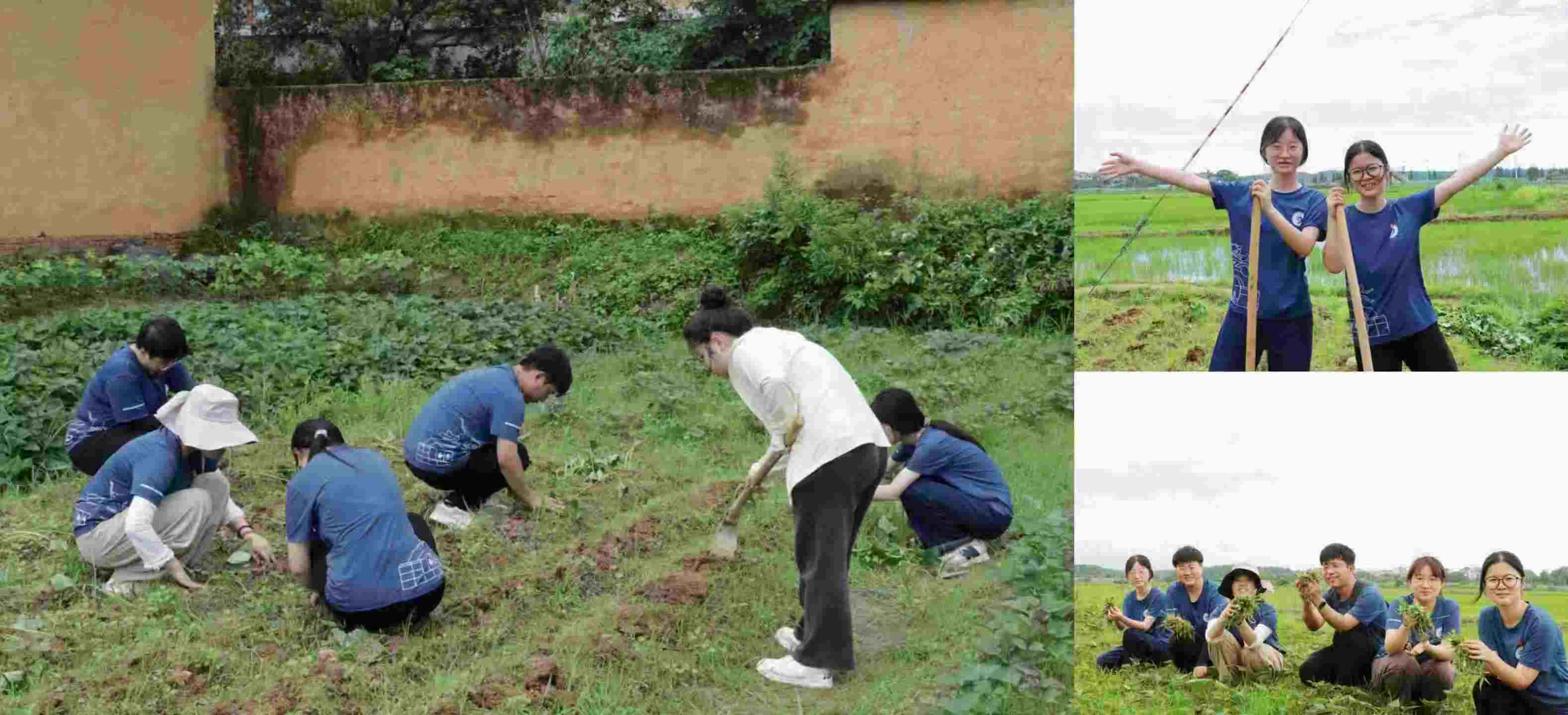 采訪結(jié)束后,實踐隊員們來到共青墾荒文化體驗園里體驗種紅薯,指導(dǎo)人員細(xì)心教導(dǎo)大家如何剪紅薯苗、如何插紅薯苗,隊員們紛紛挽起褲腳、拿起農(nóng)具,體驗除草、鋤地的勞作。烈日下,汗水濕透了衣衫,但每個人的臉上都綻放著燦爛的笑容,笑容里藏著初嘗農(nóng)事的驚喜,也藏著與土地對話的自豪。泥土沾滿掌心,卻讓隊員們觸摸到了勞動最真實的溫度;腰酸背痛,卻讓大家體會到了耕耘的艱辛與快樂。