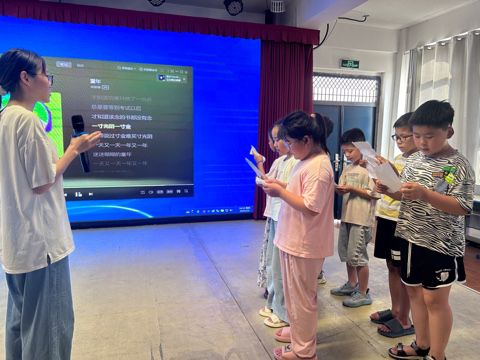 健康課堂結(jié)束后,活動(dòng)重心轉(zhuǎn)向?yàn)?月6日的文藝匯演,進(jìn)行緊張而有序的節(jié)目排練。負(fù)責(zé)各個(gè)節(jié)目的隊(duì)員根據(jù)孩子們的年齡特點(diǎn)和興趣愛(ài)好,分組帶領(lǐng)大家投入小品表演、詩(shī)歌朗誦以及活力四射的啦啦操練習(xí)。在小品排練區(qū),孩子們?cè)谖覀兊闹笇?dǎo)下揣摩角色、練習(xí)臺(tái)詞,稚嫩的表演中透露出認(rèn)真與投入,歡聲笑語(yǔ)不斷;詩(shī)歌朗誦組則書(shū)聲瑯瑯,孩子們抑揚(yáng)頓挫地練習(xí)著優(yōu)美的詩(shī)句,感受著語(yǔ)言藝術(shù)的魅力;啦啦操場(chǎng)地更是充滿(mǎn)動(dòng)感,伴隨著歡快的音樂(lè)節(jié)奏,孩子們努力練習(xí)著每一個(gè)動(dòng)作,揮灑著青春的活力與熱情。排練過(guò)程雖然辛苦,但孩子們熱情高漲,眼神中充滿(mǎn)了對(duì)舞臺(tái)的期待,充分展現(xiàn)了他們的藝術(shù)潛能和團(tuán)隊(duì)協(xié)作精神。