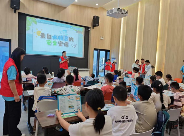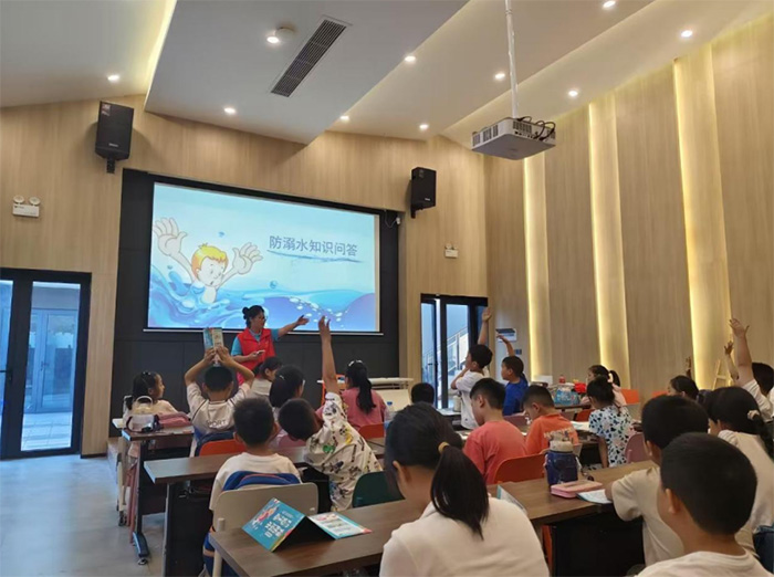 而最引人注目的安全教育環(huán)節(jié),實踐團(tuán)通過警示視頻、情景模擬開展防溺水宣講,并創(chuàng)新推出"防溺水知識問答"游戲,社區(qū)工作人員發(fā)放《安全手冊》糾錯,孩子們化身安全衛(wèi)士,在趣味互動中筑牢生命防線。