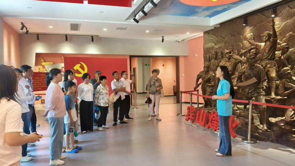 6月29日,實踐團隊抵達賓山革命紀念館,在參觀學習的基礎上,開展紅色宣講活動。酉華鎮團委書記沈均輝結合地方黨史,為師生們作了生動詳實的補充講解與教學指引,使在場師生對紅色記憶的感悟更加鮮活深刻,實踐團成員丁伯雅、朱麗穎結合歷史文獻與革命故事,圍繞賓山地區的革命斗爭史實進行紀念館講解稿件的撰寫,結合賓山革命紀念館自身的歷史價值,對五個展區進行講解排練,在池州學院黨委委員、副院長張賽的帶隊看望慰問下,于7月1日在莊嚴肅穆的紀念館內正式講解,團隊成員們通過重溫烽火歲月、品讀先烈事跡,進一步筑牢信仰根基,此次紀念館講解不僅是對革命精神的再領悟,更是對實踐團員擔當使命的思想淬煉,促使團隊成員進一步追憶賓山烽火,崢嶸歲月。