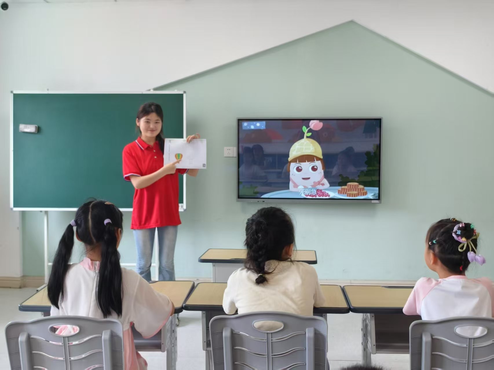 除了體能訓(xùn)練,輕松有趣的樂游課和語言課同樣精彩紛呈。烹飪課上,志愿者手把手教孩子們清洗簡單食材,讓孩子們在動(dòng)手實(shí)踐中感受勞動(dòng)的樂趣與成就感;語言課借助看圖說話、短句接龍等小游戲,巧妙激發(fā)孩子們開口表達(dá)的勇氣;樂游課更是充滿歡聲笑語,孩子們專注觀看動(dòng)畫片、認(rèn)真做手工、開心玩集體游戲的模樣,為課堂增添了濃濃的溫馨氛圍。