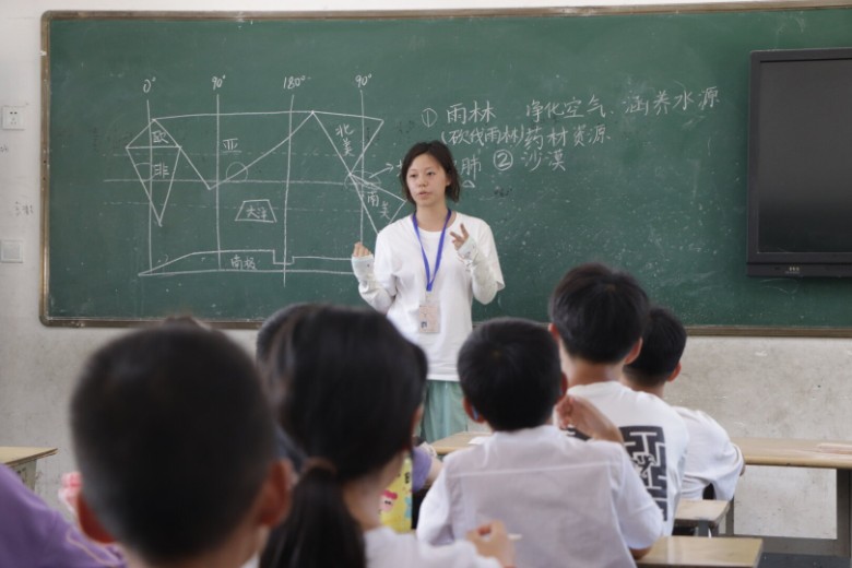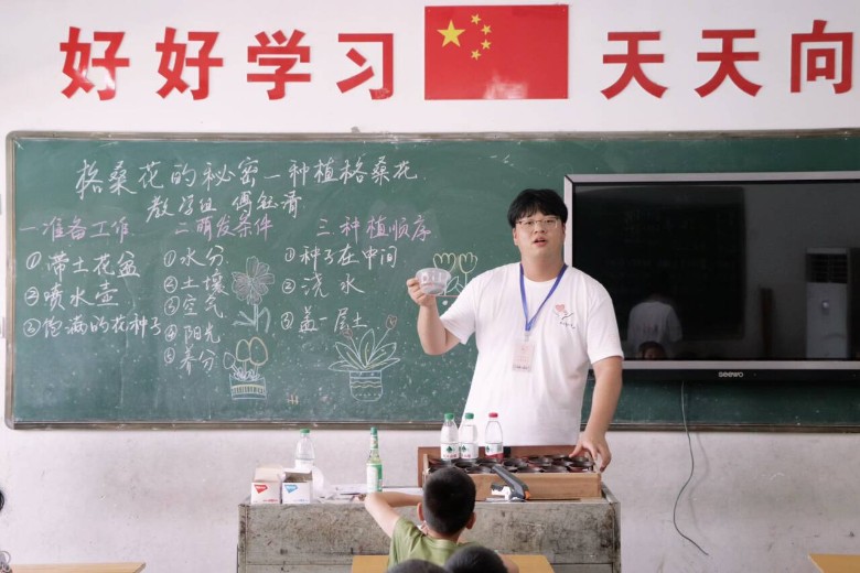 為充分發揮地理專業知識優勢,助力鄉村教育力量發展與振興,引導地理與旅游學院學子運用專業知識為提高鄉村兒童科學素養貢獻青春力量。在7月2日-7月3日的暑期愛心托管班中,志愿者們精心設計趣味地理知識小課堂,用知識為孩子們打開夢想的窗,讓愛傳播向更遠的地方。