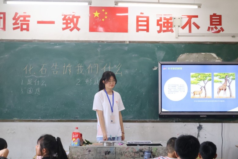 志愿者宋輝開展“化石的秘密“課堂。從一副骨架圖片,講到地球的發展,從恐龍時代,講到人類進化。課程開始,老師以一系列的問題作為開場,瞬間點燃了在場同學的好奇心。課程中老師借助大量精美的圖片和生動的視頻資料,深入講解了化石的形成過程、種類以及它們在古生物學研究中的重要意義。同學們仿佛穿越時空,親眼目睹了遠古生物的繁盛與滅絕。孩子們從“要我學”轉變為“我要學”。這份對知識本身的渴望,是驅動未來持續探索的原動力。不僅加深了孩子們對地理知識的認識,更激發了孩子對探索世界的興趣與熱愛。