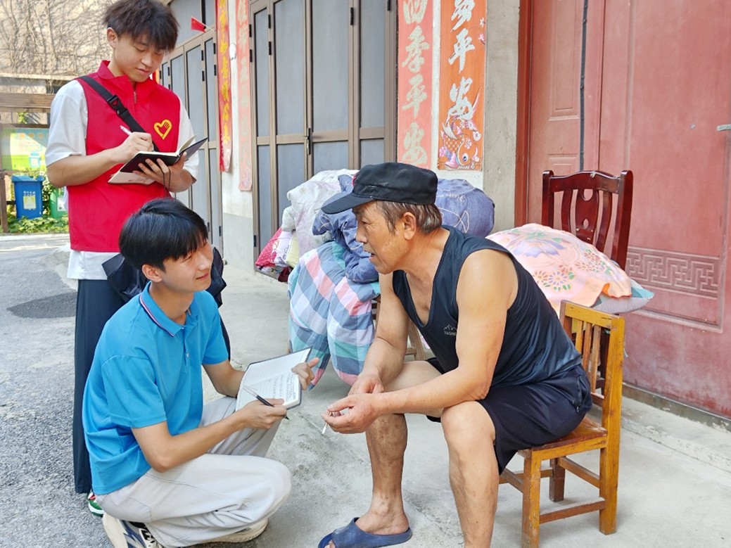 圖為實(shí)踐團(tuán)成員調(diào)研當(dāng)?shù)卮迕駥?duì)大學(xué)生基層就業(yè)工作的認(rèn)識(shí)和了解情況。梁章浩攝