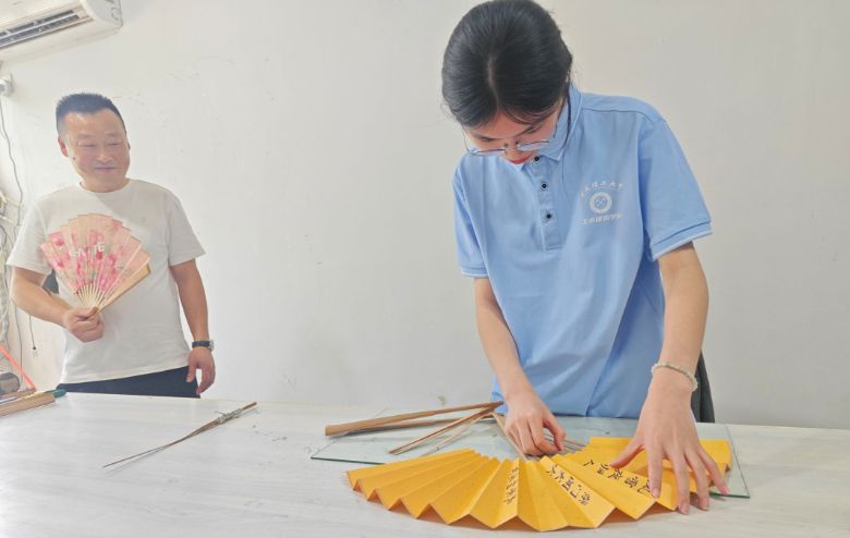 團(tuán)隊(duì)成員體驗(yàn)折扇制作過程