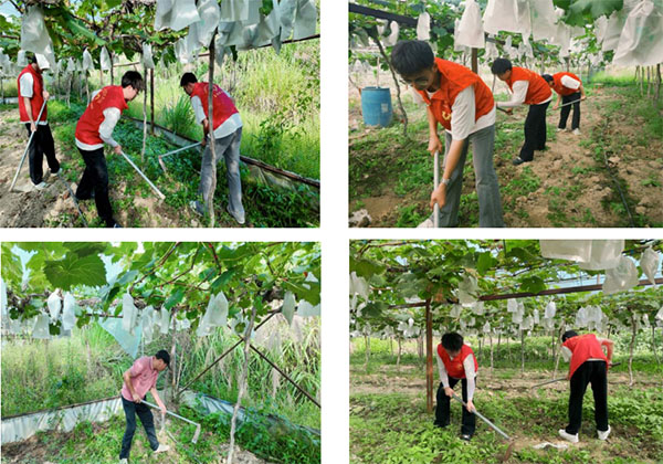 烈日當(dāng)空,實(shí)踐服務(wù)團(tuán)的成員們手握鋤頭、鐵耙,穿梭在百香果、葡萄園中。他們面對著雜草叢生的農(nóng)田以及干裂的石塊,奮力的揮動(dòng)起鋤頭,每一次揮鋤都帶著力量,土壤在他們的努力下漸漸變得疏松。在勞動(dòng)間隙,當(dāng)?shù)毓r(nóng)主動(dòng)上前指導(dǎo),傳授翻土深度與間距的訣竅,隊(duì)員們認(rèn)真聆聽,將理論融入實(shí)踐,以實(shí)際行動(dòng)為鄉(xiāng)村振興貢獻(xiàn)力量。