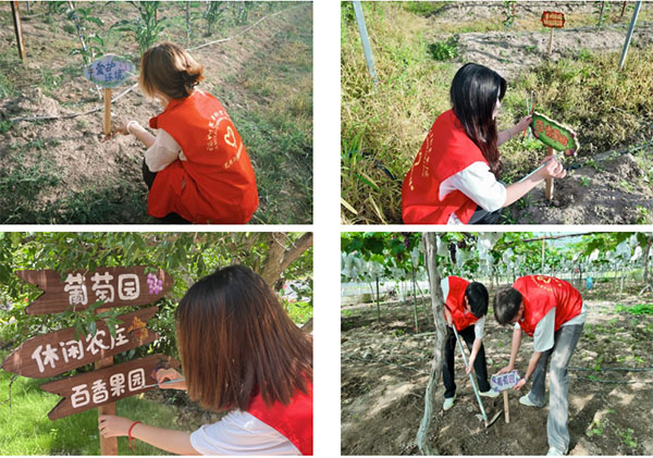 (圖為實(shí)踐服務(wù)團(tuán)成員在果園設(shè)計(jì)安裝專屬路標(biāo) 張柯欣攝)