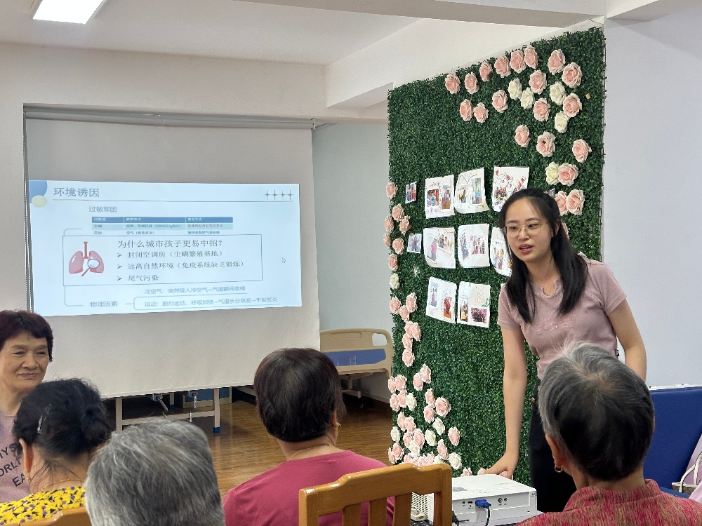2025年6月25日,南京醫科大學暑期“三下鄉”社會實踐團隊——“控糖脫敏護成長之路,接苗防疫守青春之盾”分隊走進南京市江寧區東山社區居家養老服務站,針對空氣污染及室內過敏原等環境暴露因素對兒童哮喘發病率的影響開展專題宣講。團隊通過發放科普手冊、現場講解防護策略,助力家長識別哮喘信號、優化居家環境,推動兒童呼吸健康社區防線建設。