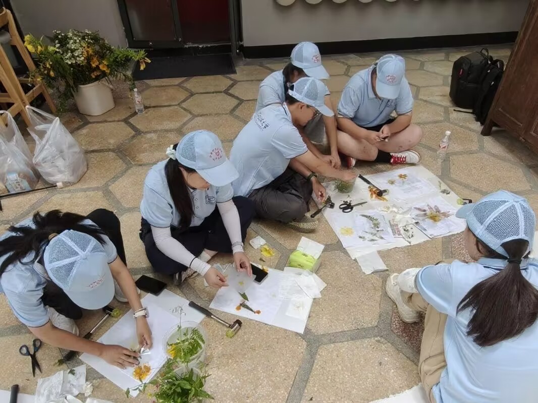 巧拓葉韻顯匠心,自然藝術融新意隊員們前往植物園科普館,沉浸式體驗植物拓染技藝。大家精心挑選形態各異的葉片,將其平整鋪在棉麻布料上,持錘反復敲打。隨著力度傳遞,葉綠素與植物纖維緩緩沁入布料,獨一無二的葉脈紋路漸漸暈染開來。一錘一落間,隊員們感受著植物特征,把自然饋贈與藝術創意巧妙糅合,讓葉片脈絡在布料上“復活”,盡顯自然與人文交融的匠心新意。