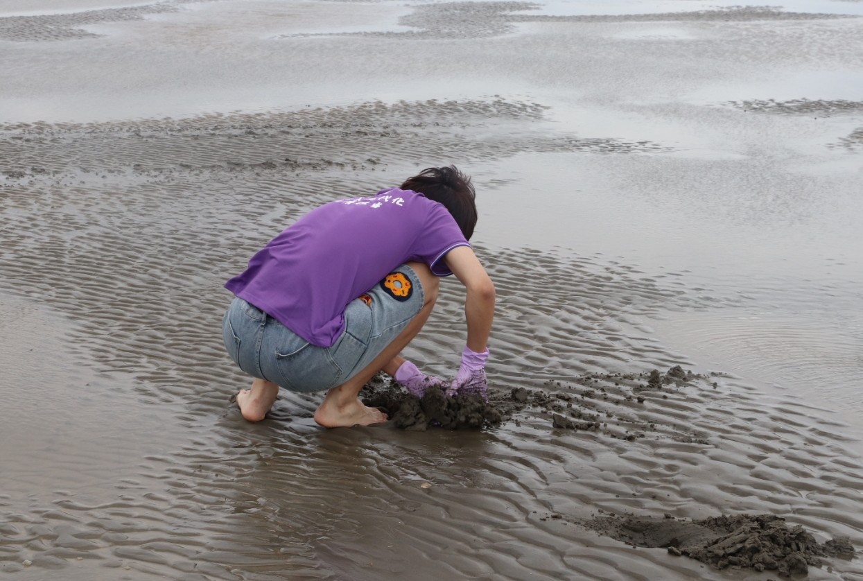 非遺課堂:灘涂上的“海洋芭蕾”,綿延數(shù)公里的金色灘涂隨著潮水退去展露真容,實踐團成員赤腳踏入這片天然課堂。在漁民示范下,他們學習運用獨特的“扭、踩、摸”三步古法技藝尋找藏在沙層下的文蛤。現(xiàn)場漁民還介紹,文蛤捕撈需遵循特定時節(jié)與手法,這份傳承千年的技藝本身就是對海洋資源的敬畏與守護。