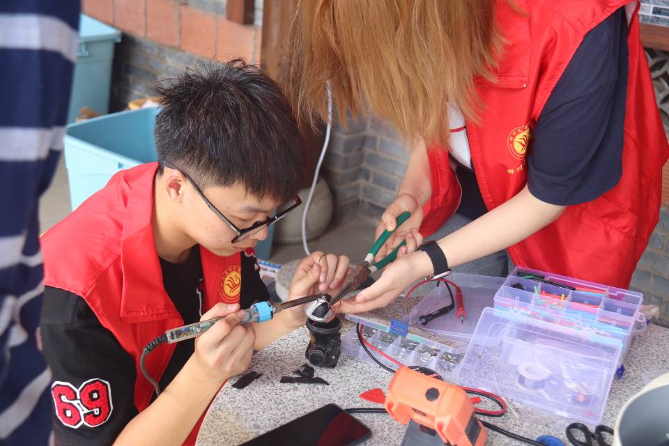 “鋒行直通車”義務維修活動,在團隊成員抵達杉林灣村后,我們發現一些村民已經把損壞的家電帶來等待維修。團隊成員將攜帶的維修元器件和工具整理好后,設立接待點,負責接待的同學立即將村民帶來的損壞電器和村民的個人信息進行登記,并仔細詢問電器的損壞程度和癥狀,做好相關記錄并貼標簽于電器上。以便于維修的同學根據癥狀判斷損壞的位置,盡快修好電器。團隊成員將電器按照類型進行分類,然后通過自主選擇的方式來分配維修任務,每位參加活動的同學都有自己的任務,根據維修水平、年級和擅長維修的家電類型來選擇工作。在維修過程中,有經驗的同學會解答維修不熟練的同學遇到的難題,在遇到不熟悉的電器時進行現場講解,教會他們如何修理這類電器。有經驗的成員會帶領第一次參加的同學一起修理電器,相互合作、互相幫助。通過帶隊老師的現場講解,同學們能夠立即進行實踐,第一次參加此活動的同學可以跟隨有經驗的同學學習經驗,提高實際操作能力,將理論轉化為實踐技能。完成維修后,進行質量檢查,確保問題得到妥善解決。對維修結果進行記錄,便于后續的跟蹤和服務改進。通知物主維修完成,安排物品的歸還。如果可能,收集反饋,了解物主對維修服務的滿意度。