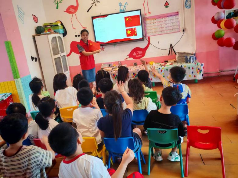 活動(dòng)伊始,志愿者們以 “認(rèn)識(shí)國(guó)旗,熱愛(ài)祖國(guó)” 為切入點(diǎn),為孩子們帶來(lái)生動(dòng)的愛(ài)國(guó)法治教育課。課堂上,志愿者手持國(guó)旗,結(jié)合精心制作的課件,向孩子們講述國(guó)旗的故事:從國(guó)旗的設(shè)計(jì)內(nèi)涵,到五星紅旗在國(guó)家重大歷史時(shí)刻的意義,用通俗易懂的語(yǔ)言,引導(dǎo)孩子們認(rèn)識(shí)國(guó)旗、尊重國(guó)旗并學(xué)習(xí)《國(guó)家安全法》的一些基礎(chǔ)知識(shí),激發(fā)幼兒對(duì)祖國(guó)的崇敬與熱愛(ài)。孩子們積極互動(dòng),紛紛舉手分享自己對(duì)國(guó)旗的認(rèn)知,稚嫩的話(huà)語(yǔ)中滿(mǎn)是對(duì)祖國(guó)的樸素情感,讓家國(guó)情懷的種子在幼小的心靈里悄然扎根。