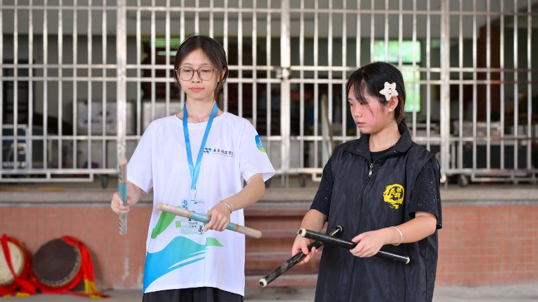 在英歌舞隊員們的悉心指導下,我們從最基礎的動作起步。雖然初學時肢體還不太協調,但傳統舞蹈特有的鏗鏘韻律已悄然感染著我們。隊員們嚴謹的示范和細致的講解,帶領我們沉浸式領略這項非遺藝術的精髓,使抽象的文化傳承變得生動可感。