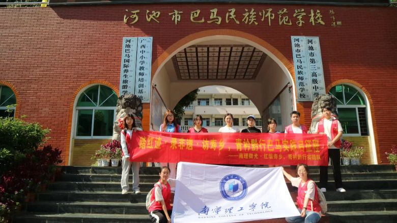 圖為團隊成員在河池市巴馬民族師范學校門前合影留念。通訊員張明巧攝