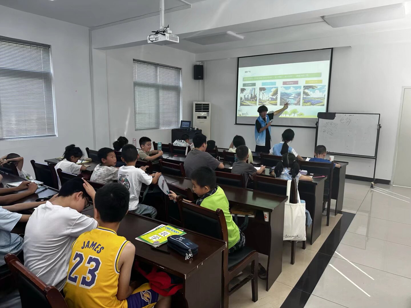 志愿者介紹了幾種常見的發(fā)電廠類型以及幾種新能源,包括火力發(fā)電廠,水力發(fā)電廠,風(fēng)力發(fā)電廠和太陽能發(fā)電廠,并展示了各類發(fā)電廠的圖片。“火力發(fā)電廠利用煤炭,石油等燃料發(fā)電,水力發(fā)電廠依靠水流的力量發(fā)電,風(fēng)力發(fā)電廠借助風(fēng)力發(fā)電,太陽能發(fā)電廠利用太陽能板將光能轉(zhuǎn)化為電能。”