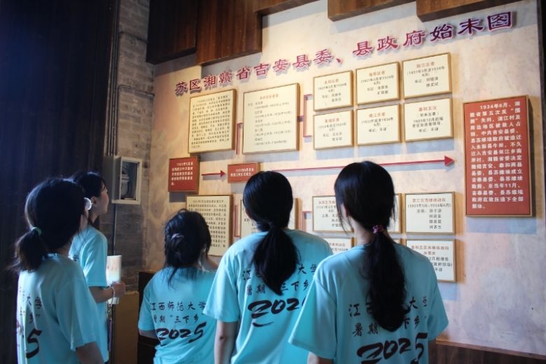 2025年7月3日,江西師范大學(xué)外國語學(xué)院“紅色廬陵”愛國主義教育實(shí)踐團(tuán)懷著崇敬之心走進(jìn)吉安縣安塘鄉(xiāng)清江紅色名村,在蘇維埃政府舊址內(nèi),斑駁的磚墻與珍貴文獻(xiàn)無聲訴說著那段波瀾壯闊的革命歲月。
