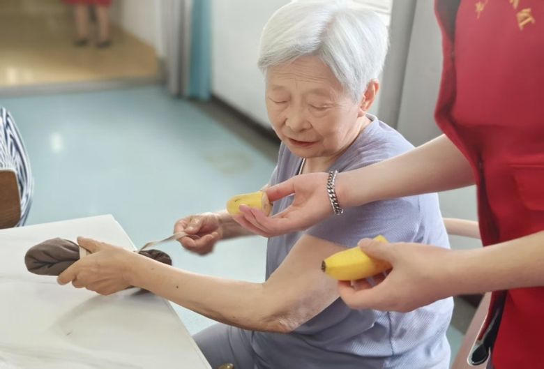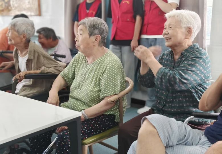 最后,護(hù)理院主任組織了一場趣味互動活動。帶老人們進(jìn)例行的每日舞蹈鍛煉,志愿者們也參入其中?吹嚼先藗儌個面帶微笑,也許是因為這天這群年輕人的到來讓些許乏味的護(hù)理院多了些歡聲笑語和活力。