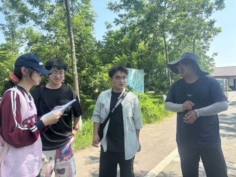 團隊隨即對村農業合作社負責人吳主任展開系統訪談。利用預先精心設計的調查問卷和專項碳排放調研表,團隊聚焦收集了核心種植數據(如主導作物類型、肥料種類及精準施用量、農藥使用情況、農機作業頻率與能耗、秸稈處理方式等)。這些一手數據是后續建立本地化、高精度農田碳足跡核算模型的核心支撐。通過訪談,同學們直觀感受到數據背后的農事決策邏輯和生產實際,提升了科學調研能力。