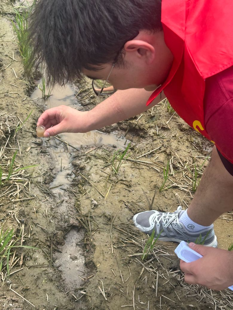 為獲得直接環境參數,團隊頂著烈日分組深入田間,科學采集水稻土樣本及水源樣本,F場測量關鍵指標包括:土壤含水量、電導率(鹽分)、酸堿度、速效氮磷鉀含量以及周邊水質。共收集有效數據組16套。這些詳實的本底數據,不僅服務于碳足跡模型的輸入參數,也為識別潛在環境影響因素、提供農田管理優化建議提供了堅實可靠的實證依據。動手實踐極大鍛煉了同學們野外采樣和科學分析的技能。