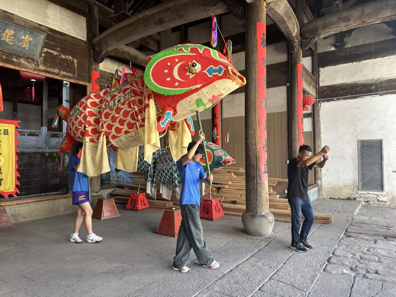 瞻淇魚燈起源于南宋時期,至今已有800多年歷史,是國家非物質文化遺產之一。近期,瞻淇魚燈再掀非遺研學熱潮,據當地咖啡店老板王長瑜說,從今年6月至今,已有安徽理工大學、安徽建筑大學、安徽農業大學、安徽職業技術大學等多所省內高校的14支團隊,共計師生1000余人來此地調研。