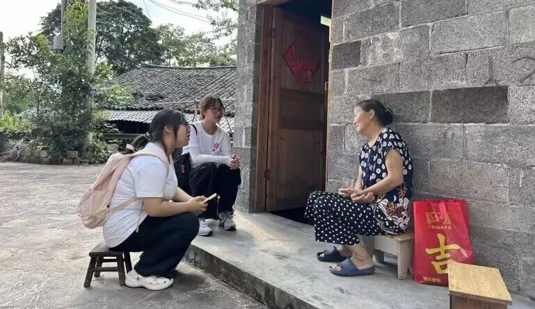(服務(wù)團(tuán)成員在院壩進(jìn)行訪談)