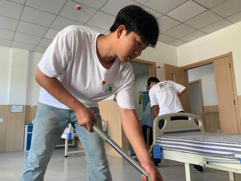 7月4日,隊員們甫一抵達便迅速投入行動。分組對養老院的公共活動區、走廊及庭院進行了細致的環境衛生整治。志愿者們認真清掃地面、擦拭設施、整理物品,經過兩小時的辛勤勞動,為老人們營造出更加清爽舒適的居住環境。