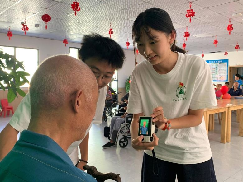 隨后,“幸福留影”溫馨開啟。隊員們化身“專屬攝影師”,耐心地為老人們拍攝正式的登記照和生活紀念照。他們精心調整光線角度,輕聲引導老人放松神情,細致捕捉每位長者慈祥的笑容與眼中的光彩。“這張拍得精神!好多年沒這么正式照相了。”一位爺爺輕撫照片欣喜地說道,一張張照片定格了溫馨瞬間,成為老人們珍貴的紀念。