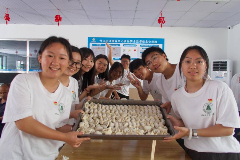 臨近午間,一場溫馨的包餃子活動在食堂展開。隊員們與醫護人員、老人齊聚一堂,揉面、搟皮、調餡,分工協作,氣氛熱烈。多位老人主動示范傳統包餃技法,青年學子虛心學習,兩代人在鍋碗瓢盆的協奏中拉近了距離,熱騰騰的餃子成為連接心靈的暖心紐帶。