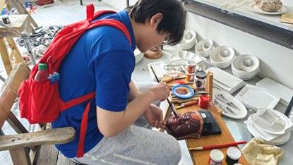 圖2:團(tuán)隊成員參與到儺面具描色過程中