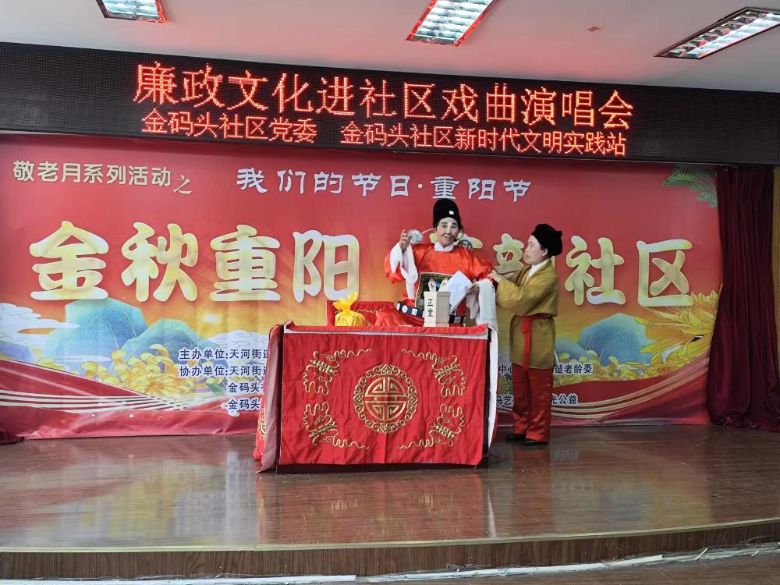 隨后,實踐團成員來到天河街道金碼頭社區。在該社區實踐團了解到該社區創新開展“金秋重陽藝韻社區”廉政戲曲進社區文化活動。通過廬劇、黃梅戲等傳統戲曲形式,將廉潔文化融入文藝表演,為社區居民獻上了一場別開生面的廉潔文化盛宴。社區負責人表示,這種寓教于樂的形式既豐富了群眾文化生活,又潛移默化地傳播了廉潔理念,取得了良好效果。下一步,社區將繼續創新形式,開展更多群眾喜聞樂見的廉潔文化活動,推動清廉社區建設走深走實。