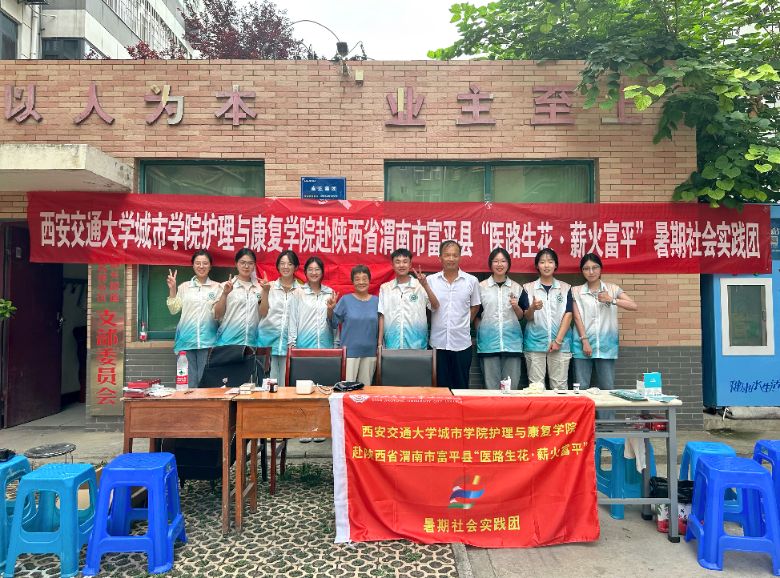 西安交通大學(xué)城市學(xué)院,護(hù)理與康復(fù)學(xué)院赴陜西省渭南市富平縣“醫(yī)路生花·薪火富平”暑期社會(huì)實(shí)踐團(tuán),是一支由學(xué)院學(xué)生黨支部組建的專業(yè)實(shí)踐隊(duì)伍。團(tuán)隊(duì)由2名專業(yè)指導(dǎo)教師和8名護(hù)理系學(xué)生黨員組成,充分發(fā)揮護(hù)理專業(yè)優(yōu)勢,開展健康義診、醫(yī)療知識(shí)普及等志愿服務(wù)工作。