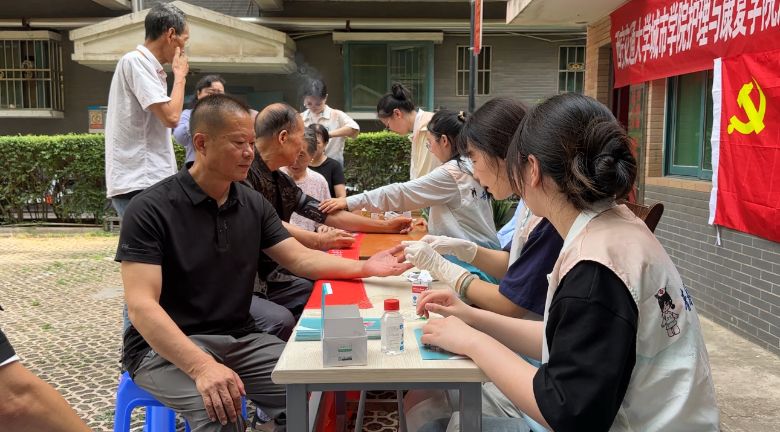 在富平熾熱的陽光下,我們的義診區(qū)前流淌著別樣的溫暖。白大褂成為最親切的風(fēng)景,血糖儀連接起跨越年齡的信任。俯身為老人測量血壓時(shí),總會(huì)不自覺放慢語速,將專業(yè)術(shù)語化作"日,嵥"的叮嚀。當(dāng)聽到奶奶顫巍巍地說"今天我可太幸福了,多了這么多孫子孫女"時(shí),眼眶突然就濕潤了。當(dāng)看到小區(qū)負(fù)責(zé)人頂著烈日為我們送來冰涼的礦泉水時(shí)。指間的涼意直擊心靈深處,當(dāng)聽到中醫(yī)耳貼區(qū)傳來陣陣笑聲,銀發(fā)阿姨們像小姑娘一樣和我們一起暢聊,平靜的語氣里藏著動(dòng)聽的話。就像那些不期而遇的溫暖,總能恰到好處地沁人心田。