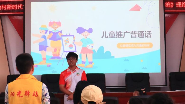 。ㄍㄓ崋T:王欣怡)為助力鄉村振興戰略實施,7月4日上午,江西水利電力大學水土保持學院三下鄉實踐團走進江西省井岡山市拿山鎮溝邊村新時代文明實踐站開展兒童推廣普通話活動。