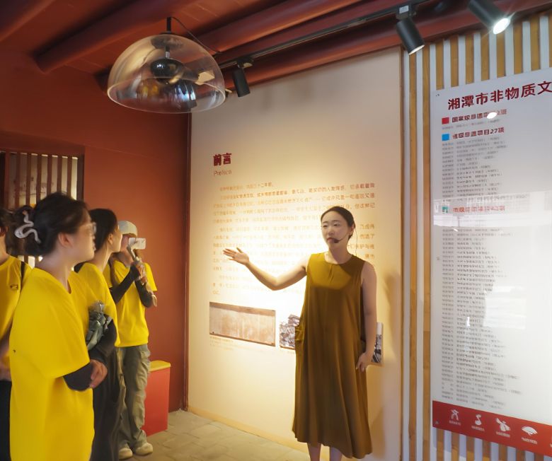 作為湖湘地區(qū)重要的歷史文化建筑,關(guān)圣殿承載著數(shù)百年的歲月滄桑,其建筑風(fēng)格融合了多種藝術(shù)特色,團(tuán)隊(duì)成員有序參觀了三個(gè)非遺展廳—“觀風(fēng)”“品物”“匠心”,從湘潭清刀木雕到巫家拳,從精美的民間手工藝到獨(dú)具特色的傳統(tǒng)民俗,在專業(yè)講解員的引領(lǐng)下,130項(xiàng)各級(jí)非遺項(xiàng)目向團(tuán)隊(duì)成員展現(xiàn)了湘潭文化的獨(dú)特魅力和傳承人的匠心精神,近距離感受非遺作品的精湛技藝和深厚文化內(nèi)涵,在沉浸式體驗(yàn)中感悟非遺在新時(shí)代煥發(fā)的藝術(shù)魅力。