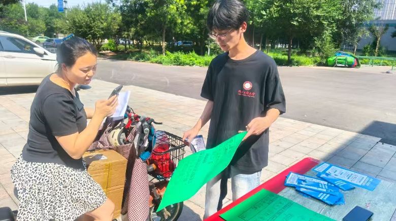 除搭建戶外宣講平臺集中宣教外,實踐團成員深入周邊村鎮、社區,開展“送知識上門”行動,向附近群眾發放反詐宣傳海報,結合海報上生動的圖文案例,用通俗易懂的語言講解虛假中獎、冒充公檢法等常見詐騙手段。面對老人提出的疑問,成員們耐心解答,手把手講解防范要點。實踐團用腳步丈量責任,以實際行動將反詐知識送到群眾身邊,切實提升基層群眾的防騙意識和能力。