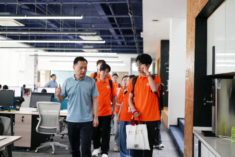 當天下午,實踐團走進安徽微谷電商物流創業園,在工作人員的介紹下,切實了解到壹度集團依托“電商+物流”模式,實現酥梨年銷量超2萬噸,帶動5000余戶果農增收。隨后,實踐團一行來到龍潤堂生物科技公司,通過企業的視頻介紹,親眼見證“6噸鮮梨轉化為1噸梨膏”的過程,了解到該技術使產品溢價達到原料的20倍,企業年消耗鮮梨8萬噸,銷售額突破1.5億元,帶動簽約農戶年均收入達8.5萬元。這兩家企業分別以電商與科技為“推進器”,為當地產業發展注入新活力,讓實踐團成員深切感受到碭山產業發展的蓬勃動力。
