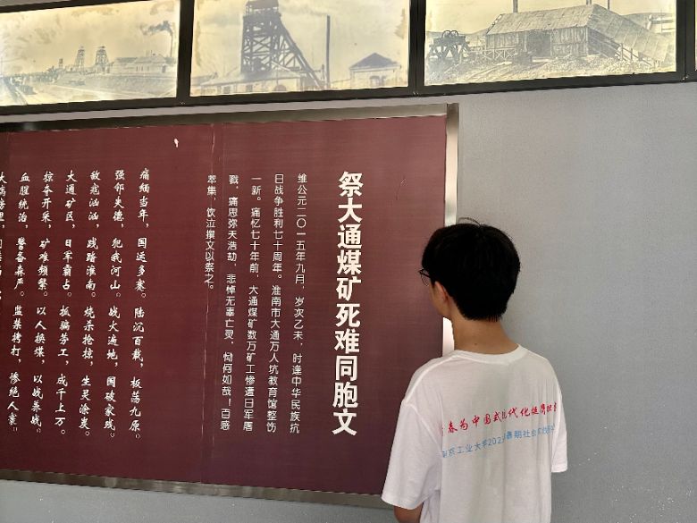 實踐團研學參觀大通萬人坑教育館(侵華日軍淮南罪證遺址陳列館)。在大通萬人坑遺址前,面對累累白骨和珍貴史料,全體隊員肅立默哀。“今年是中國人民抗日戰爭暨世界反法西斯戰爭勝利80周年,作為新時代交通人,我們更要銘記歷史,用科技創新守護來之不易的和平發展。”實踐團成員周倩茹在實踐筆記中寫道。