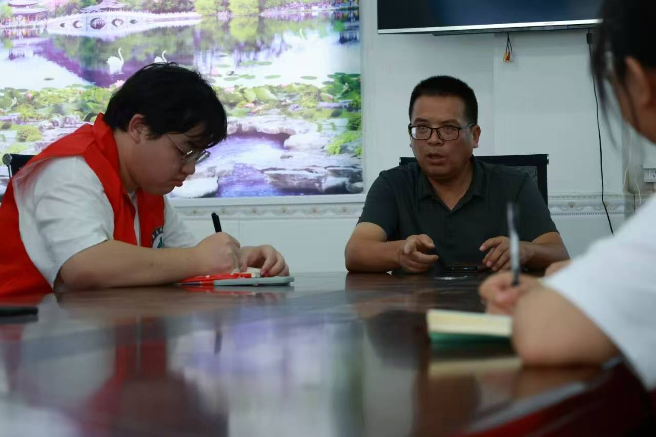 曾書記仔細傾聽我們的行程安排,接著對促進團的到來表示熱烈歡迎。他描述了花園村的基本情況,村內多發展水果種植產業,如黃桃等品質優良,水稻種植產業實現了水稻規模化種植;同時也介紹看花園村內存在的部分問題,如人口出生率低,村民養老等。給促進團的工作內容提出了寶貴意見,最后他表示會盡全力支持促進團的實踐工作。