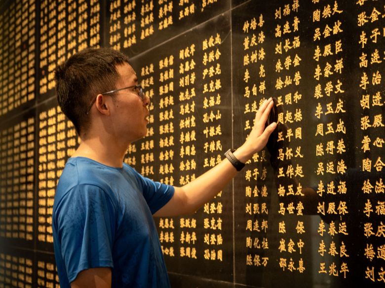 圖為團隊成員瞻仰阜陽烈士名錄。田澤坤攝