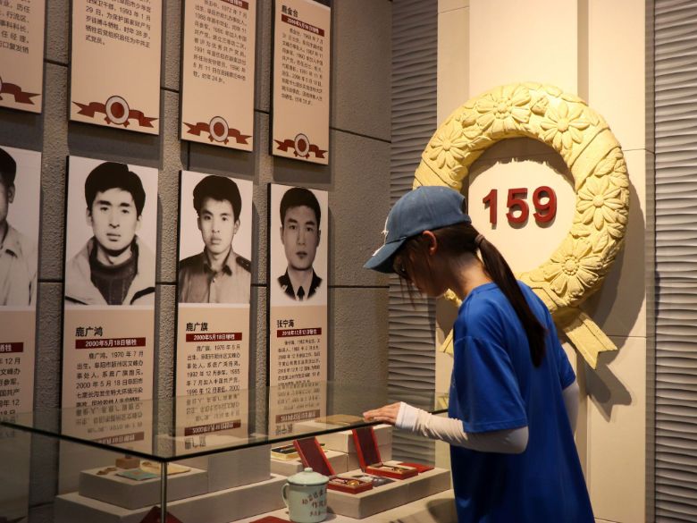 圖為團隊成員瞻仰烈士勛章。田澤坤攝