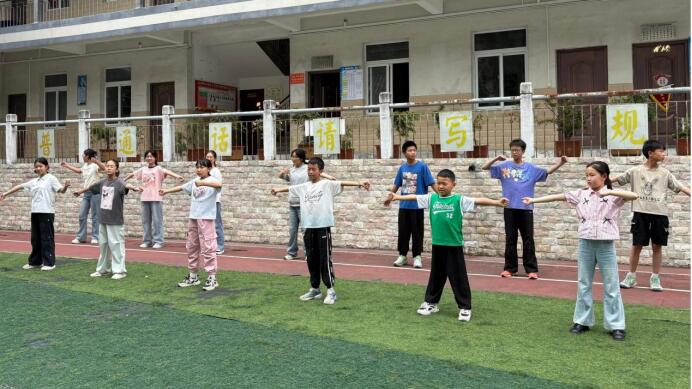 活絡(luò)功是一種融合了舒緩動作與調(diào)節(jié)呼吸的傳統(tǒng)健身方法,適合鍛煉學(xué)生身體的柔韌性和專注力。支教隊員介紹,最初引入活絡(luò)功是希望豐富體育課內(nèi)容,同時幫助孩子們緩解久坐學(xué)習(xí)的疲勞。