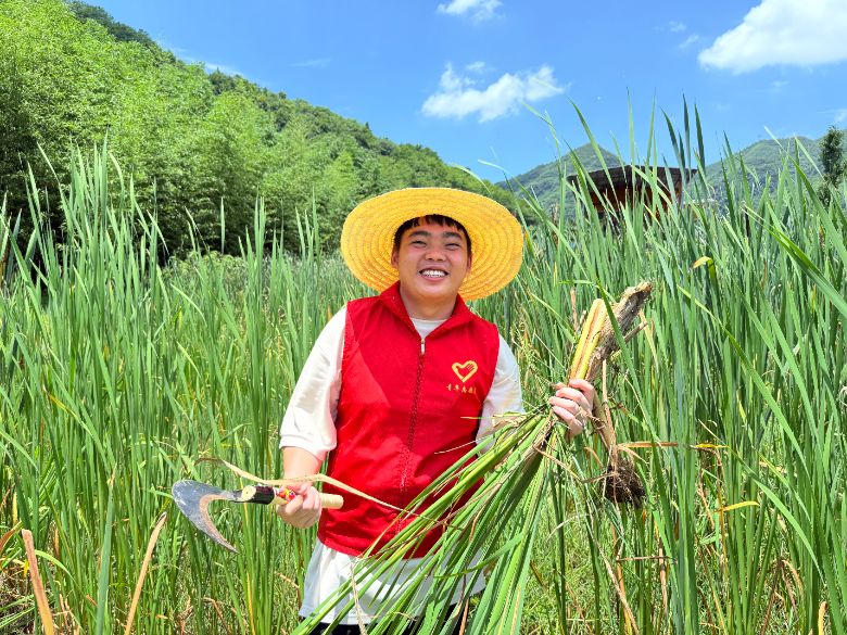 躬耕紅色沃土,厚植為民情懷從歷史場景走向田間地頭,團隊成員們挽起褲腳、手持農具,將研學感悟轉化為實際行動。安旭東在勞作日記中寫道:“烈日下每一鋤落地的震顫,都讓我理解‘為人民服務’不是標語,就像楊老師宣講紅色故事9年。”腳下的泥土沾濕褲腳,手中的農具翻起田壟,額頭的汗珠墜入土中。這些觸感讓隊員們讀懂,紅色精神從不是抽象口號,而是扎根大地的責任擔當。田間綻放的那張笑臉,正是傳承精神最好的見證。