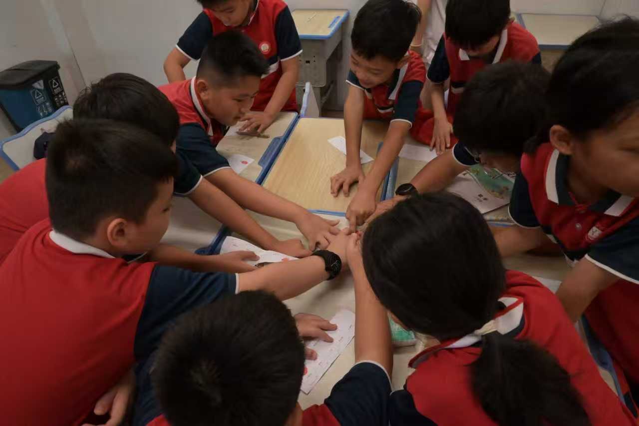 圖為學生們印下自己的手印。蔣京彤供圖。