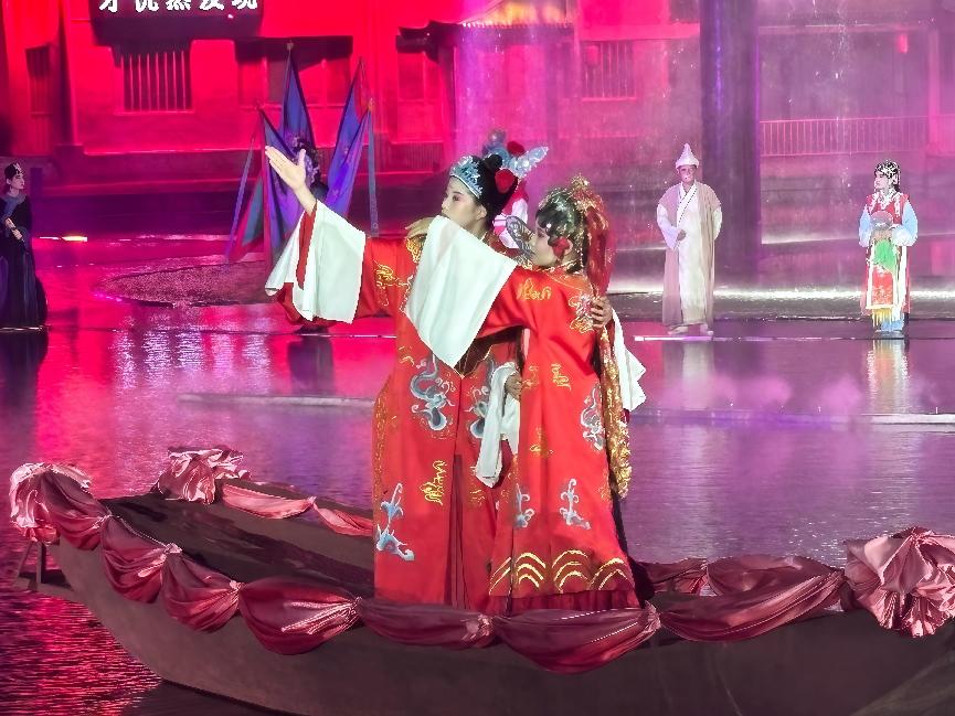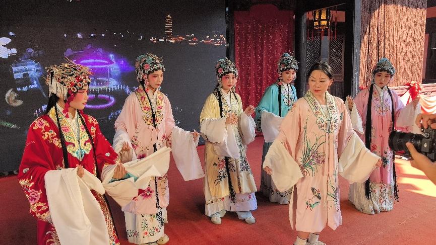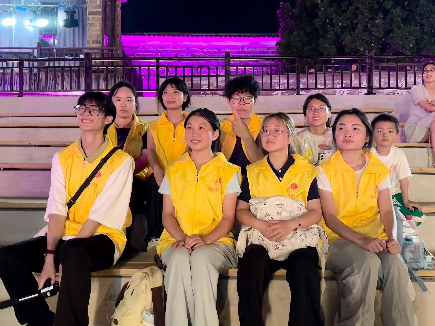 夜晚,《尋夢牡丹亭》實景演出拉開帷幕。美輪美奐的場景、演員精湛的表演,將杜麗娘與柳夢梅的愛情故事娓娓道來。成員們沉浸于“夢而死,死而生”的浪漫敘事,感受戲曲藝術的感染力。演出結束后,實踐團對戲曲演員進行采訪,從演員口中,了解到為了讓傳統戲曲被更廣泛的觀眾接受,團隊在保留《牡丹亭》經典內核的基礎上,融入了光影、聲音電、全息投影等現代技術。他們希望年輕一代能在鉆研傳統基本功的同時勇于創新,讓戲曲在時代浪潮中煥發新生機。