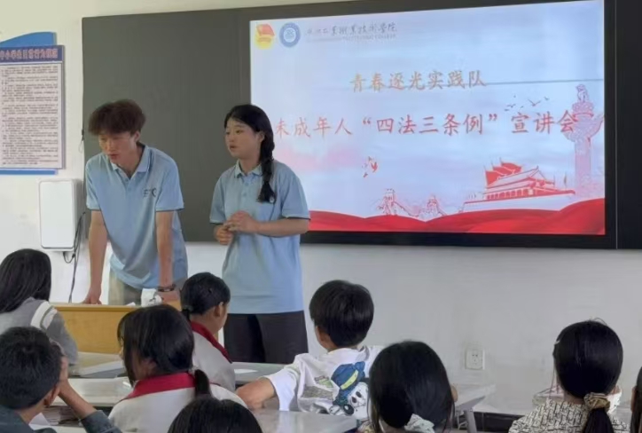 (通訊員:涂嘵松,包義靖,劉海洋) 為厚植青少年愛國主義情懷,筑牢心理健康防線,普及法律法規知識,7 月 3 日畢節工業職業技術學院“青春逐光” 實踐隊走進畢節市七星關區甘河街道中心校,開展 “愛國主義精神宣講 + 心理健康疏導 + 法治宣傳” 系列實踐活動。活動以理論宣講、互動教學、資料發放等形式展開,覆蓋該校五年級及七年級200余名學生,為鄉村校園注入青春能量。