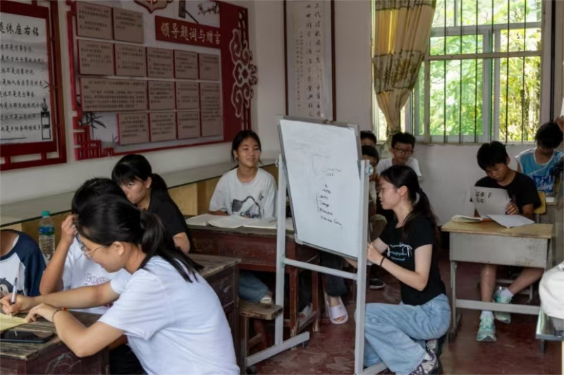 經(jīng)過兩天忙碌的前期籌備與工作對(duì)接,教學(xué)計(jì)劃得以初步開展。2025年7月8日上午7點(diǎn)30分,支教團(tuán)全體成員伴著清晨的微風(fēng)與雞鳴蟬唱踏入留守兒童樂園,動(dòng)作利落地打掃起衛(wèi)生,隨即安排各年級(jí)學(xué)生有序落座。8點(diǎn)整,老師們?nèi)硇牡赝度氲搅私虒W(xué)工作中。