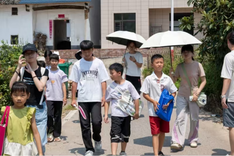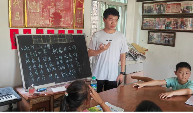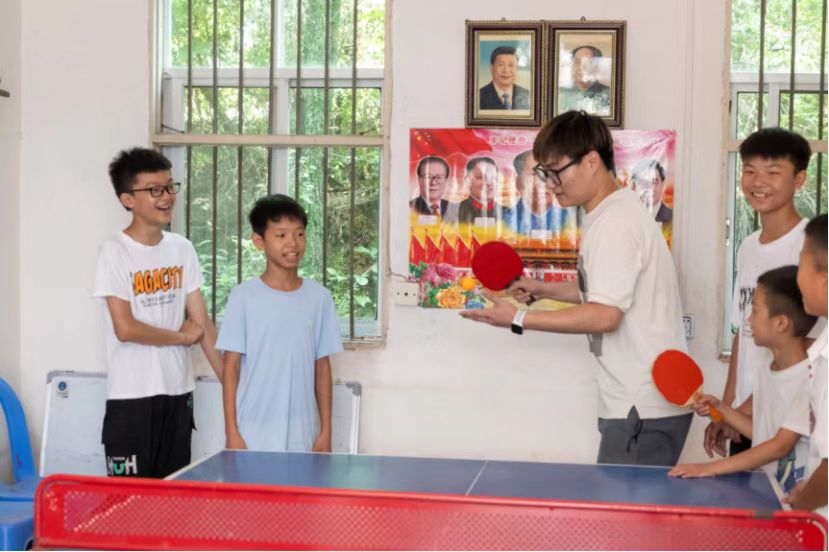 與此同時(shí),宋迅老師帶著其余小朋友在室外進(jìn)行自由活動(dòng)。藍(lán)天白云為幕,稻香清風(fēng)作伴,孩童追逐嬉鬧,歡聲笑語(yǔ)不絕于耳。他們?cè)诖思儒憻捔梭w魄,又結(jié)交到許多新朋友,給漫長(zhǎng)的暑假增添了不少新樂趣。這段支教旅程,如同照進(jìn)留守兒童生活的一束光,讓他們把暫時(shí)缺失的親情溫暖,化作和伙伴并肩成長(zhǎng)的力量。