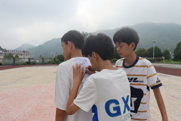此次定向越野活動共設6個打卡點,24名同學分為6個組,每組4人。以校門口為起點,操場為終點,各組可自由規劃路線。完成打卡任務后可在對應點位獲得貼紙,率先集齊6枚貼紙的三組隊伍獲得獎勵。實踐團成員在活動前為學生講解闖關規則,并引導大家合理分工、高效協作。